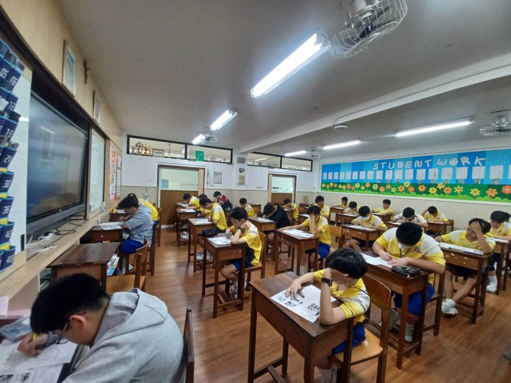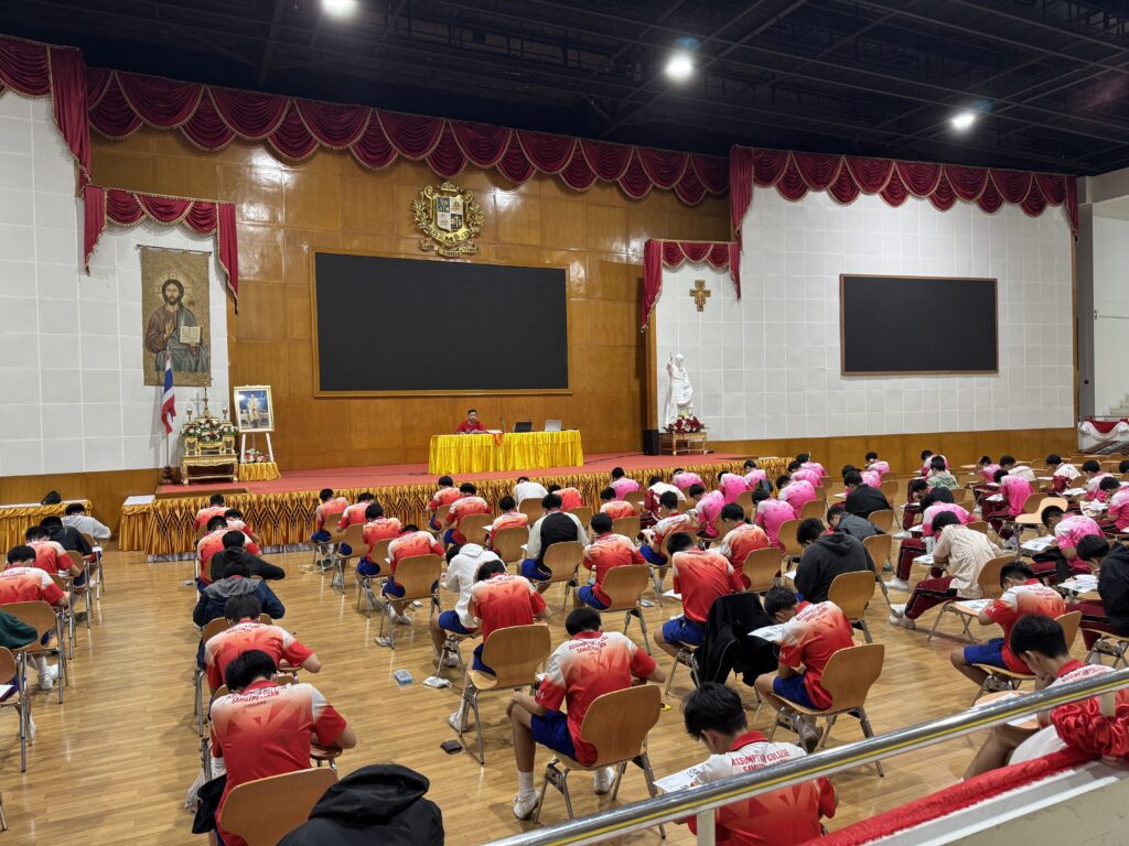 เมื่อวันที่ 4 กรกฎาคม พ.ศ.2568 บริษัท Engenius English ได้ดำเนินการจัดสอบวัดระดับภาษาอังกฤษตามกรอบมาตรฐาน CEFR (Common European Framework of Reference for Languages) ให้กับนักเรียนโรงเรียนอัสสัมชัญสมุทรปราการ ในระดับมัธยมศึกษาปีที่ 2 และ 3 บรรยากาศภายในวันสอบเต็มไปด้วยความตั้งใจและกระตือรือร้นของนักเรียนทุกระดับชั้น นักเรียนแต่ละคนมาถึงห้องสอบด้วยสีหน้าที่มุ่งมั่น พร้อมที่จะทดสอบทักษะทางภาษาอังกฤษของตนเองอย่างเต็มที่ ห้องสอบถูกจัดเตรียมอย่างเป็นระเบียบ แบ่งตามรอบเวลาอย่างชัดเจน มีเจ้าหน้าที่จากบริษัท Engenius English ดูแลขั้นตอนการสอบอย่างใกล้ชิด เพื่อให้นักเรียนได้เข้าสอบอย่างเป็นระบบ และรู้สึกมั่นใจตลอดกระบวนการ ข้อสอบถูกออกแบบให้เหมาะสมตามระดับชั้น โดยมีการใช้คอมพิวเตอร์หรืออุปกรณ์เฉพาะในการทดสอบฟังเสียง (Listening) และการอ่าน (Reading) พร้อมกับมีแบบฝึกที่ช่วยให้นักเรียนได้ปรับตัวก่อนสอบจริง