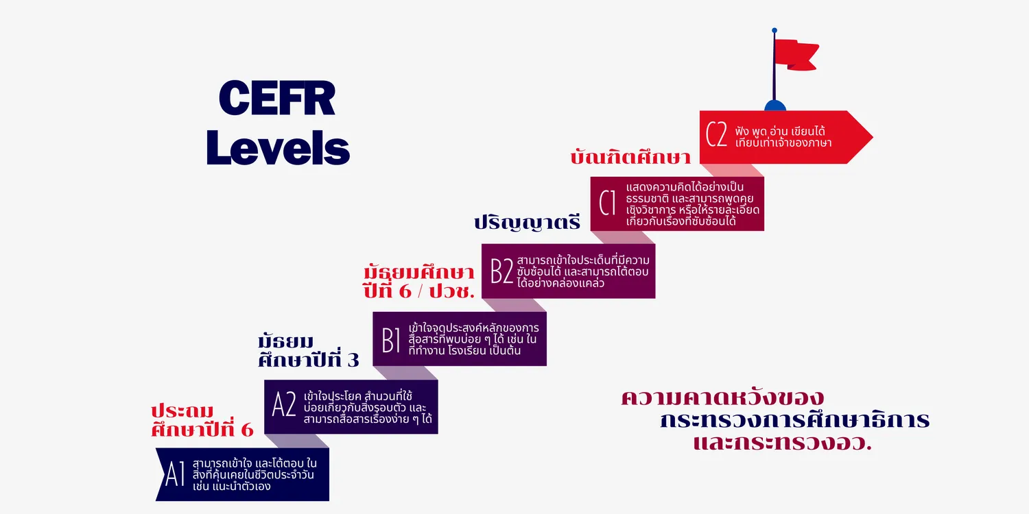 CEFR คือ The Common European Framework of Reference for Languages หรือ CEFR คือ ตัววัดมาตรฐานสากล ที่ใช้ในการวัดระดับความสามารถทางภาษาอังกฤษ โดยจะแบ่งออกเป็น 6 ระดับ โดยมีตั้งแต่ A1 สำหรับผู้เริ่มต้น ไปจนถึง C2 สำหรับระดับเชี่ยวชาญ