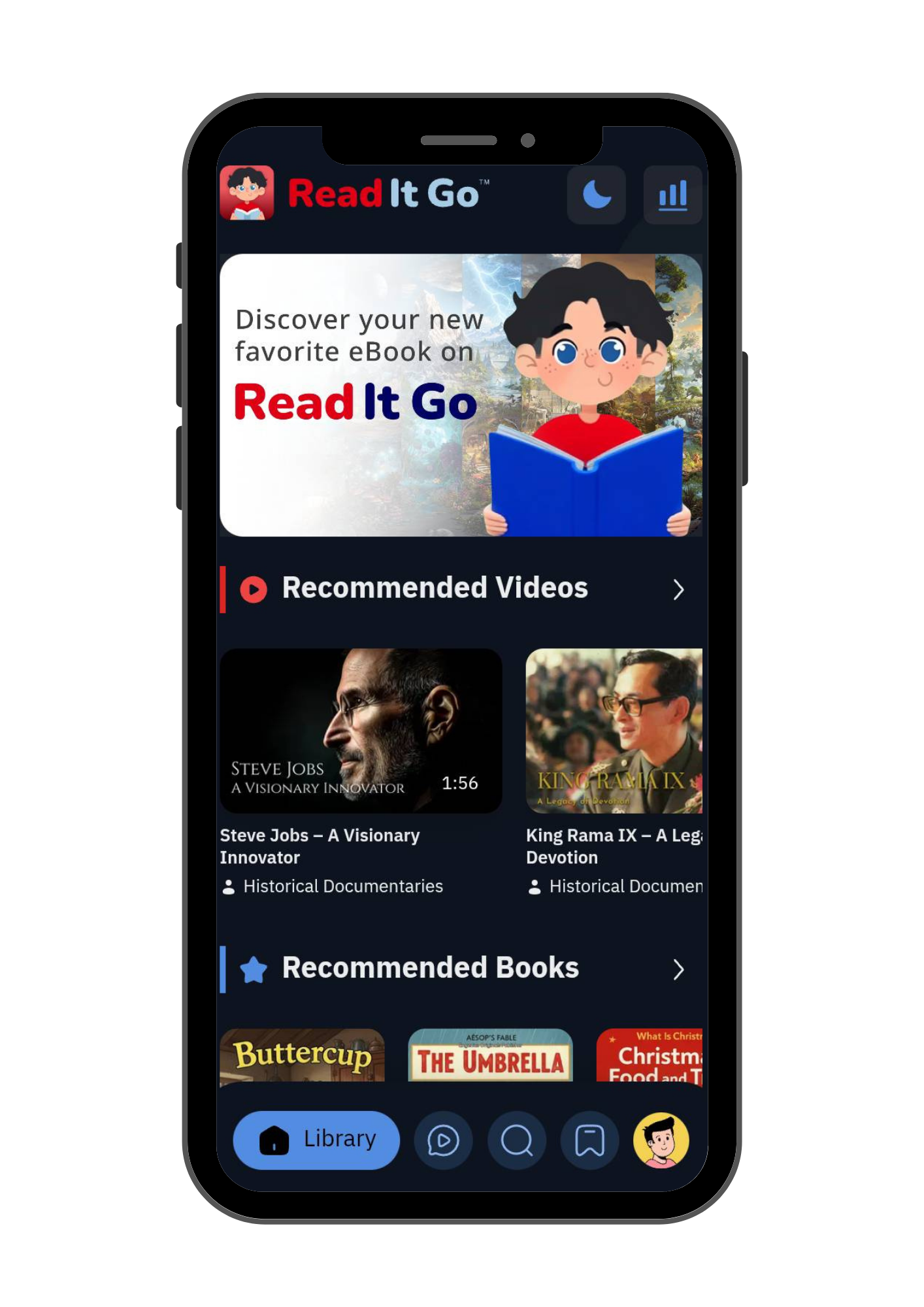 ฟีเจอร์สื่อวิดีโอ ของ Read It Go ช่วยเสริมประสบการณ์การเรียนรู้และความบันเทิง ให้ผู้ใช้เข้าถึงเนื้อหาในรูปแบบวิดีโอได้อย่างสะดวก เข้าใจง่าย และน่าสนใจมากยิ่งขึ้น